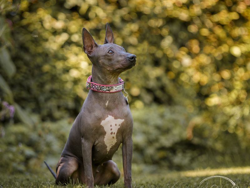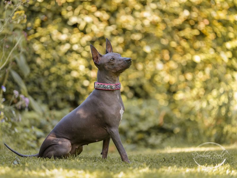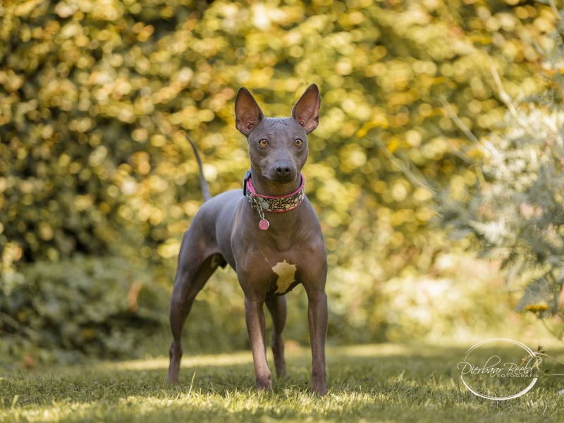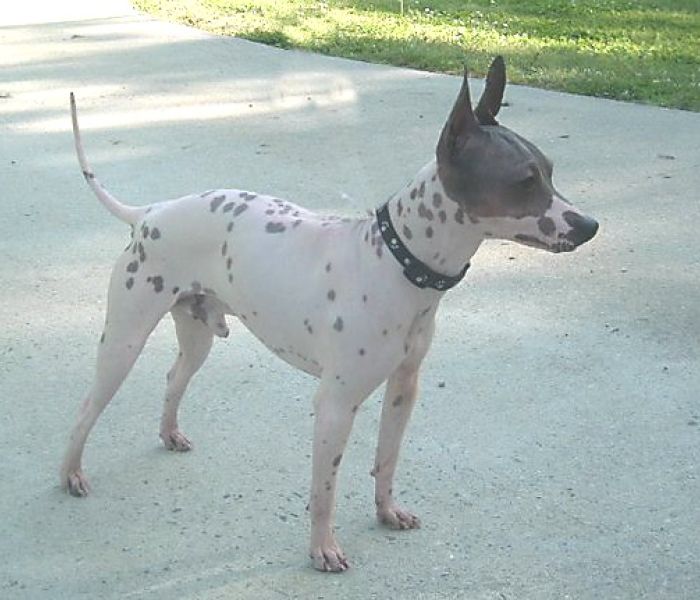 Kleur: Haarloze variëteit: Elke huidskleur wordt aanvaard. De huid is meestal tweekleurig met een onderliggende huidskleur en sproeten of vlekken van de contrasterende kleur. De vlekken worden groter naargelang de hond ouder wordt en zullen donkerder zijn bij blootstelling aan de zon.