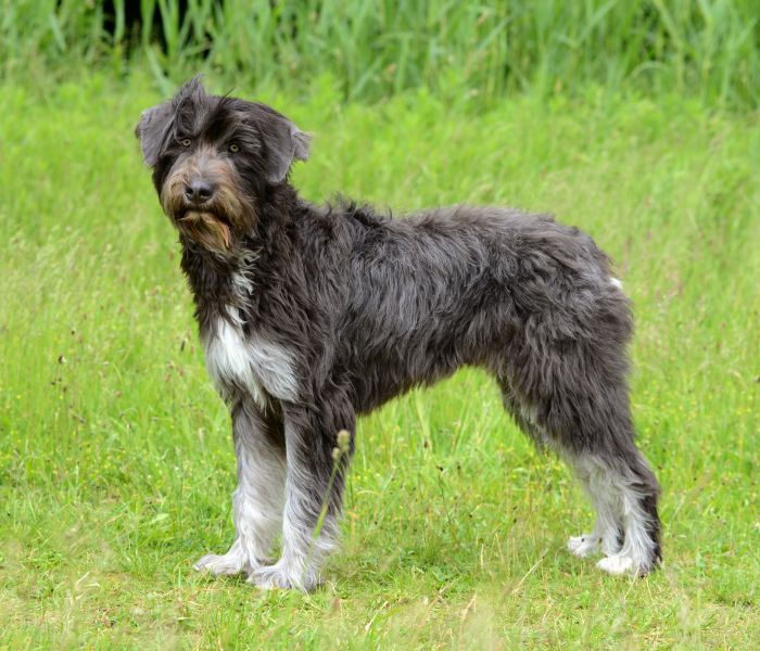 Lang, dicht, licht golvend, niet recht of gekruld, met een overvloedige ondervacht over het hele lichaam. De werkclip, bestaande uit het gelijkmatig inkorten van de vacht, dient gebruikt te worden bij exterieur hondenshows.HAAR: sterk, ietwat dik maar niet hard. Dicht in het hele hoofd, de snuit en over de ogen, ze bedekkend.Overvloedig in de kaken en vormt de baard die het ras zijn naam geeft. Op de ledematen is het haar overvloedig, ook tussen de tenen. Het is ook overvloedig aanwezig op de staart tot aan de punt.KLEUR: Geel, grijs, zwart, reekalf en wolfsgrijs in bleke, gewone en donkere tinten. Witte aftekeningen zijn acceptabel op de voorvoeten, de achterpoten of beide, borst, buik en staartpunt; kan een witte bles hebben (op het hoofd) en / of een witte kraag.