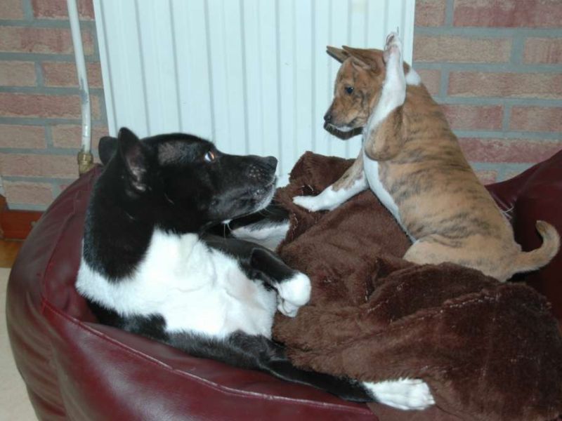 De Basenji wordt ook wel een katachtige hond genoemd. Hij heeft geen lichaamsgeur, houdt niet van water, likt zich schoon en speelt als een kat en is maar 1x per jaar loops.