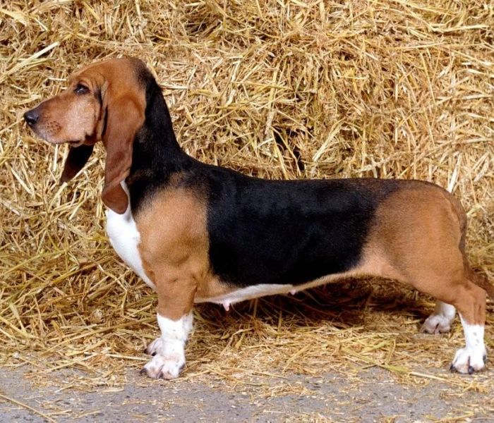 Een verschijning met allure; alsof hij zo uit een schilderij is gestapt. Hij heeft een prachtig adellijk hoofd, gesierd met lange soepel vallende oren. Zijn sprekende ogen en vriendelijke blik geven hem een zachte uitstraling. Een lage, stevige hond met een gestrekte bouw. Glanzende, kortharige vacht, meestal driekleur. Zijn schofthoogte ligt tussen de 30 en 36 cm. Een volwassen Basset weegt circa 18 kilo. Hij wordt gemiddeld 13 jaar oud, maar 15 jaar is geen uitzondering.