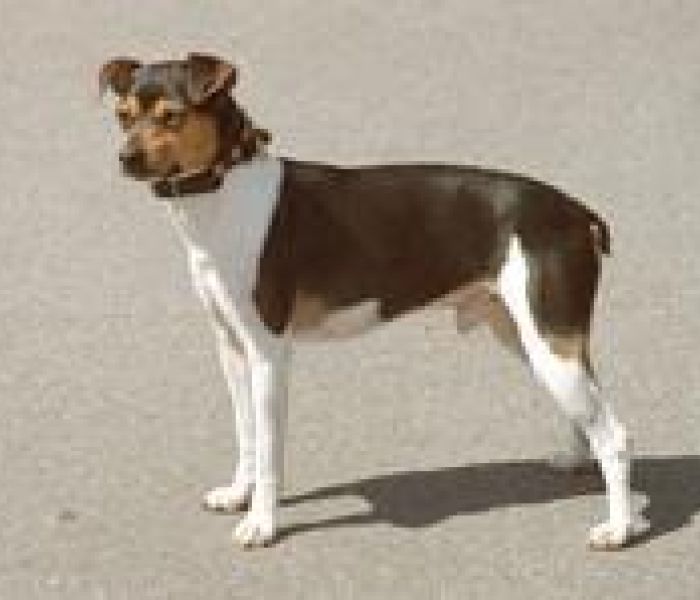 Hoogbenige gladharige Terrier die in veel aspecten aan de Jack Russell doet denken.