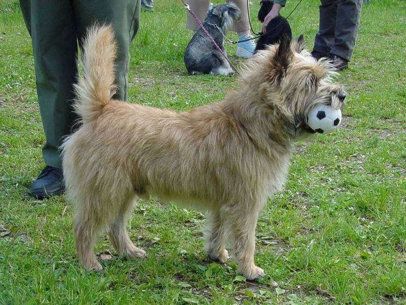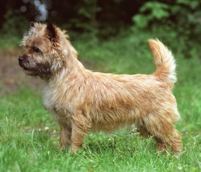 De Cairn Terrier is een kleine en stevige hond met staande oren en een kort rechtop staand staartje.