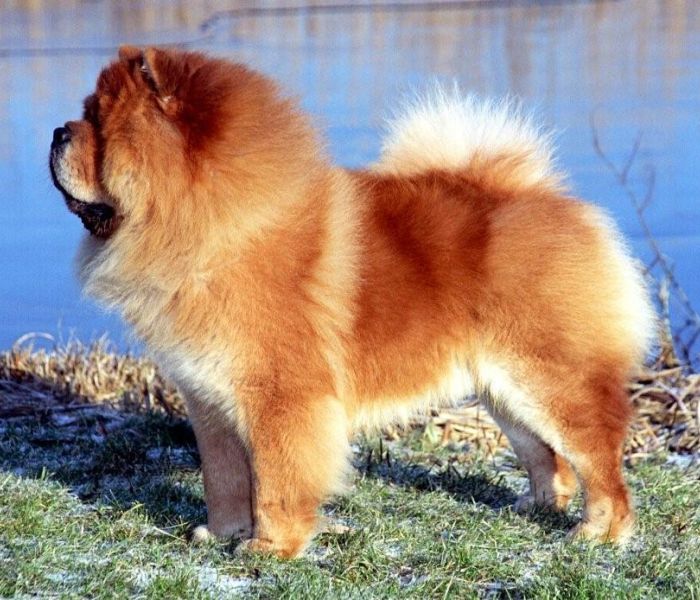 Middelgroot, voor een Spits aan de stevige kant, straalt rust en waardigheid uit. Drie typische kenmerken: blauwe tong (in een liefst helemaal donkere mond), 'scowl' (zurige, fronsende uitdrukking ten gevolge van de plaatsing van de oren) en de steile achterhand, verantwoordelijk voor het aparte steltachtig gangwerk.