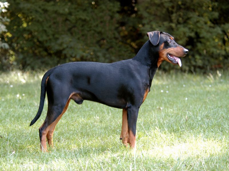 De schofthoogte van de Duitse Pinscher ligt tussen de 45 cm en 50 cm. Het gewicht ligt rond de 15 kg.
