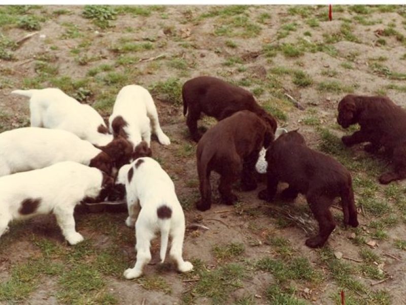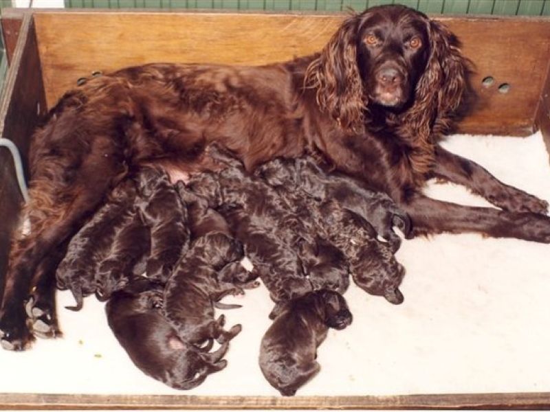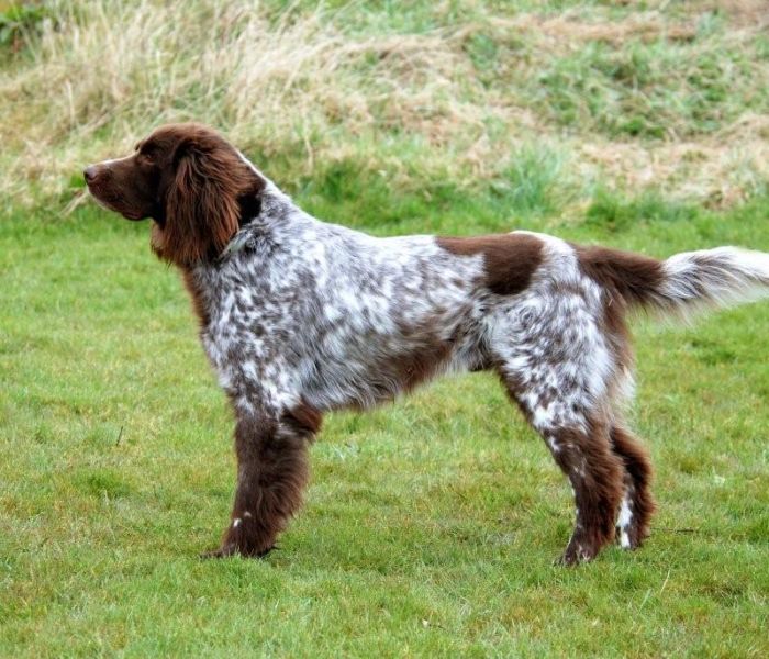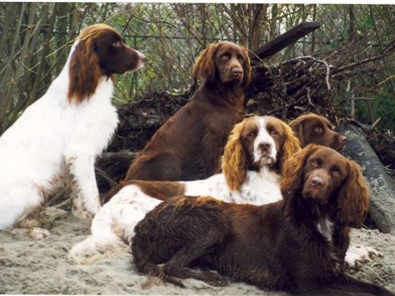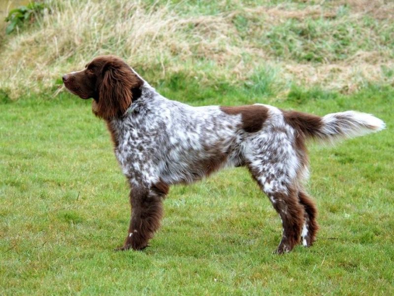 Ze hebben een spanielvacht. Kleuren bruin, bruinschimmel of bruin-wit.