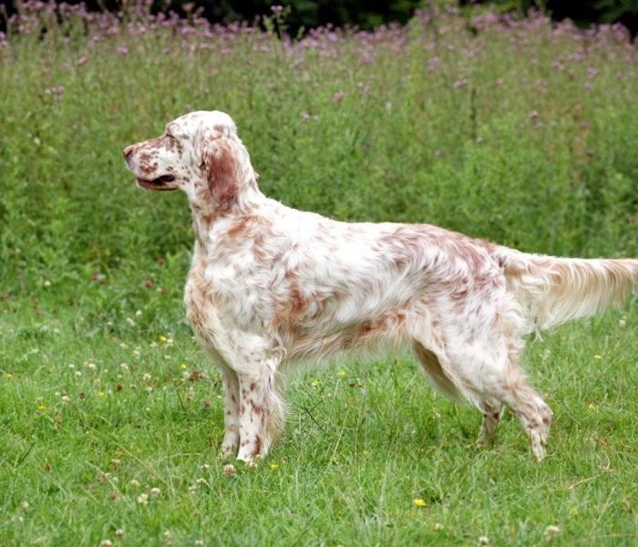 De schofthoogte van de Engelse Setter ligt tussen de 60 en 70 cm. Het gewicht is gemiddeld 30 kilo.