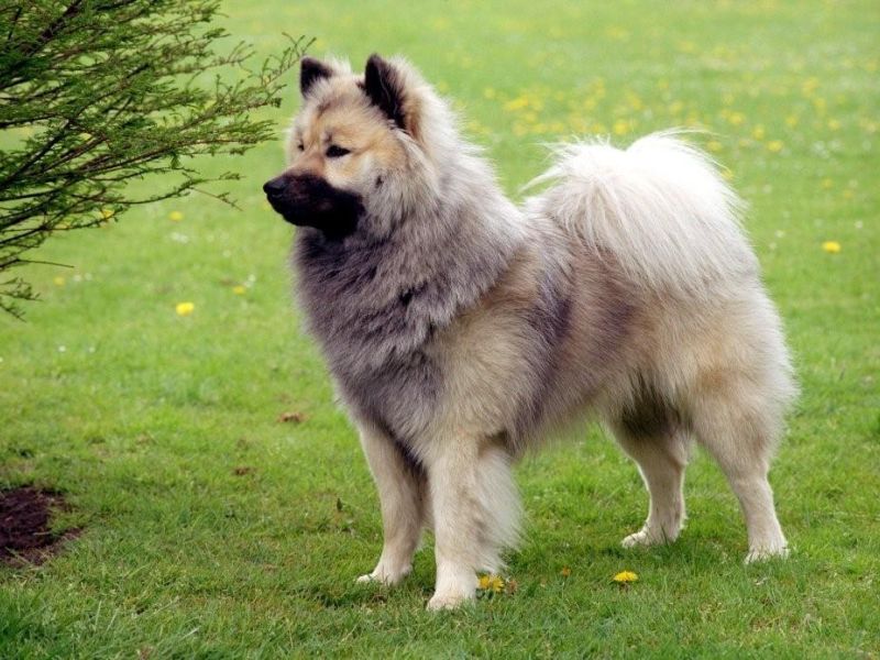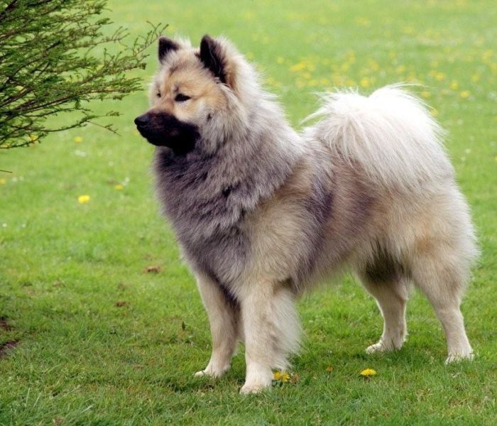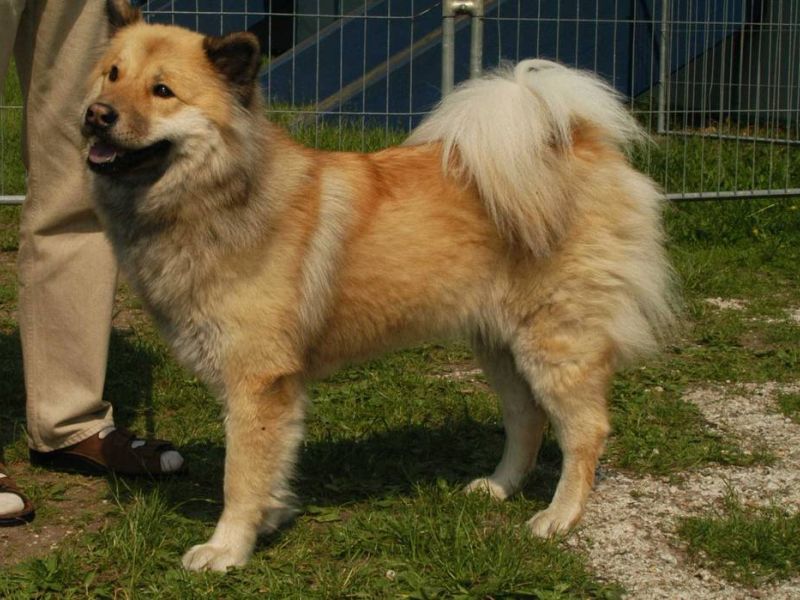 Dikke onderwol op het hele lichaam, middellange, los aanliggende bovenvacht, kortere vacht op het gezicht en aan de benen, op de achterkant van de voorbenen na, die net als de staart en de broek lang behaard is. Kleuren rood tot blond, wolfsgrijs, zwart en zwart met lichtere aftekening.