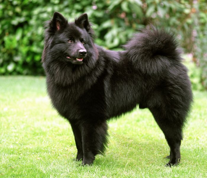 De bovenvacht is lang, recht, afstaand, fluwelig op gezicht, oren, voorkant van de benen en de voeten. Ondervacht kort en dik. Kleur: geheel bruin of geheel zwart.