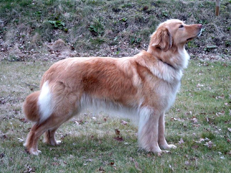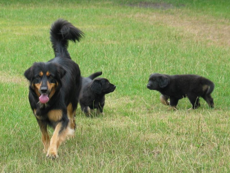 Middelgrote, krachtige, maar geen grove, langharige gebruikshond.