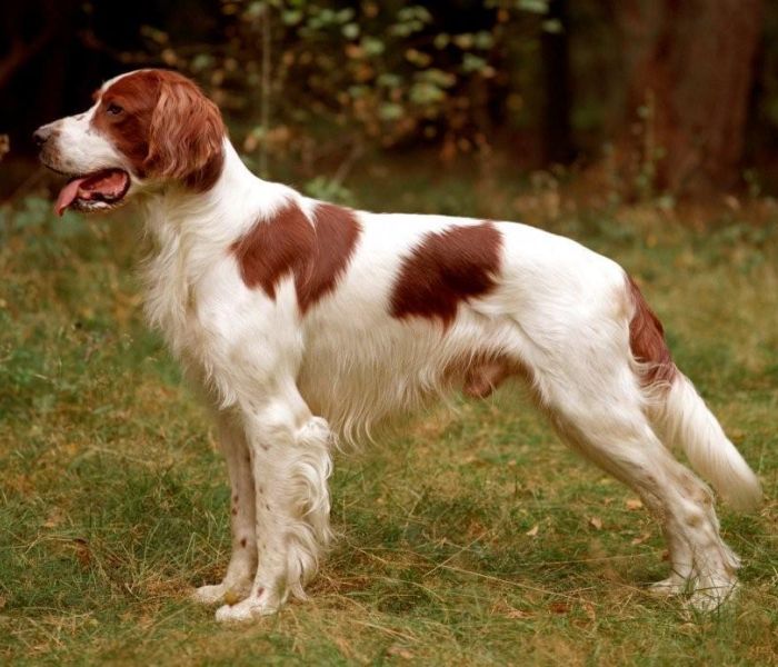 Een sterk gebouwde, evenredige, goed gevormde jachthond met een lichaam dat is berekend op langdurig zwaar werk en snelheid. Zijdeachtige lange beharing, met name aan de benen, buik en staart. De grondkleur is wit met rode platen (rode eilanden). Vlekjes (eilandjes - geen schimmelpatroon) zijn alleen toegestaan op hoofd en benen.
