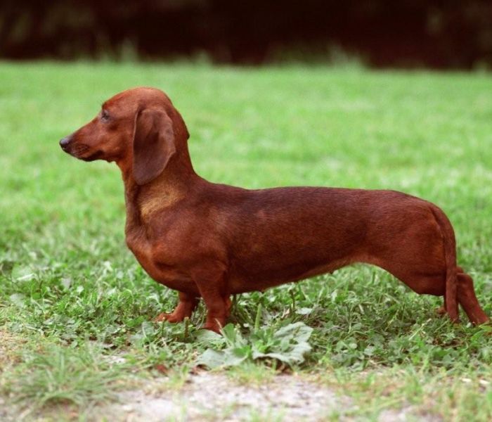 Een lage en langgerekte maar compacte verschijning met korte, rechte voorbenen en sterk van bot; de borstkas is ruim en diep en opvallend is het sterk vooruitspringende borstbeen. Het hoofd is langgestrekt, scherp en droog besneden met een attente uitdrukking.