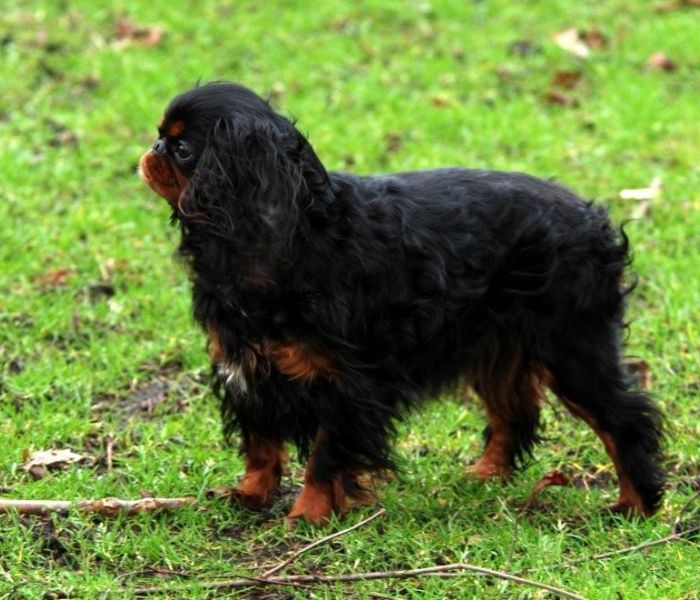 De vacht is lang, zijdeachtig -'licht golven is toegestaan, krullen niet - met overvloedige bevedering aan oren, benen en staart. Dieprood (ruby, zwart met roodbruine aftekening (black and tan&), wit met kastanjerode platen (blenheim), en zwartwit met roodbruine aftekening (tricolour).