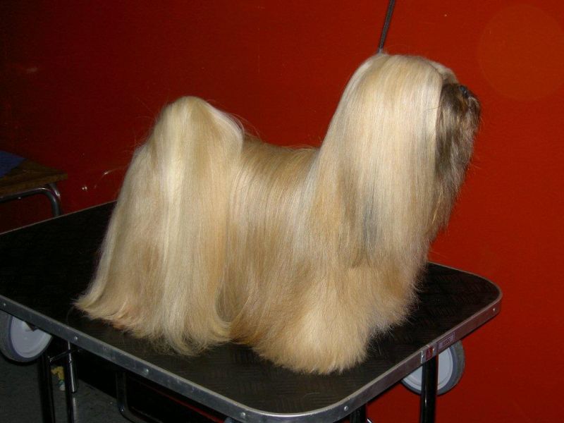 De schofthoogte van de Lhasa Apso ligt rond de 25 cm. Het gewicht varieert van 5 tot 10 kilo.