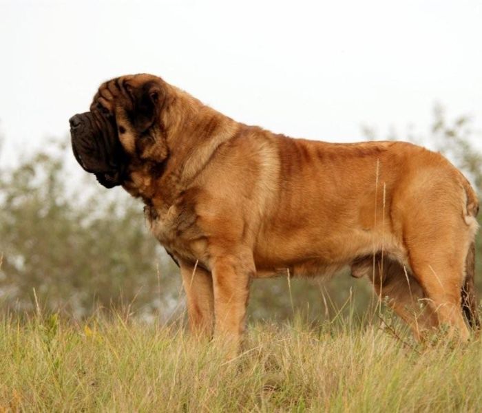De schofthoogte van de Mastiff ligt tussen de 70 cm en 75 cm. Het gewicht varieert van 80 kg tot 95 kg.