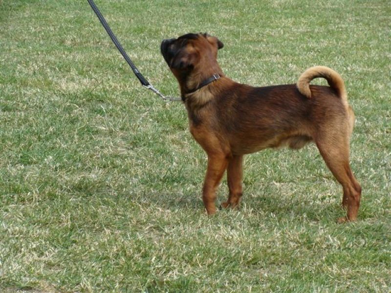 Klein, stoer hondje met korte neus en een verstandige blik in de ogen. Stevig en gedrongen van bouw, elegant in beweging.