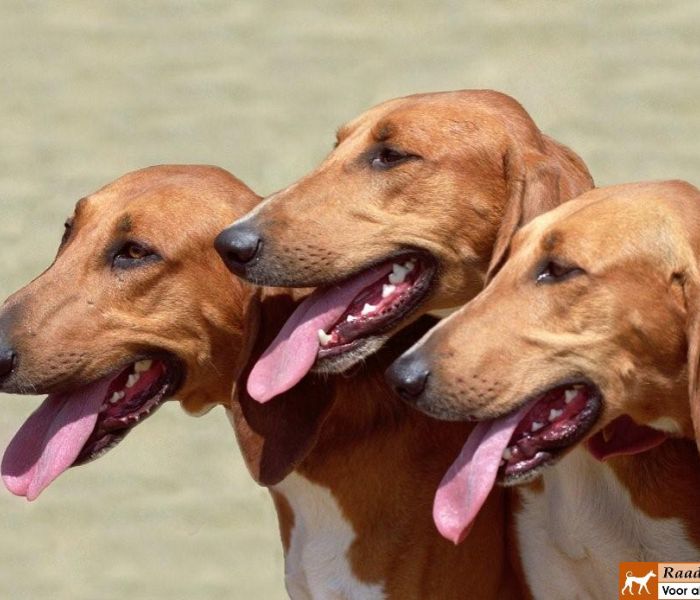 Echte jachthond, die het beste in "packs" gehouden kan worden en waarmee gewerkt moet worden.