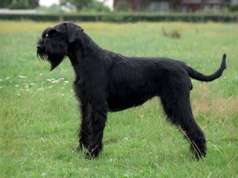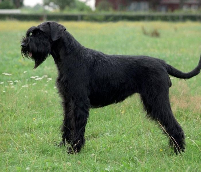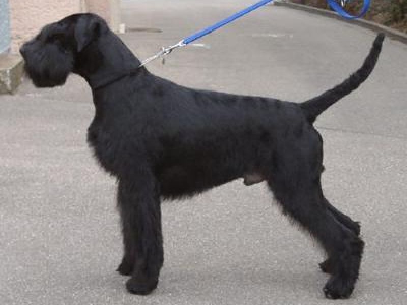Groot, sterk, eerder gedrongen dan slank, ruwharig, de vergrote versie van de Schnauzer.