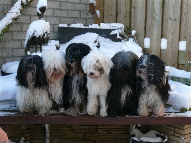 De schofthoogte van de Tibetaanse Terrier ligt tussen de 35 en 40 cm. Het gewicht varieert van 9 tot 12 kilo.