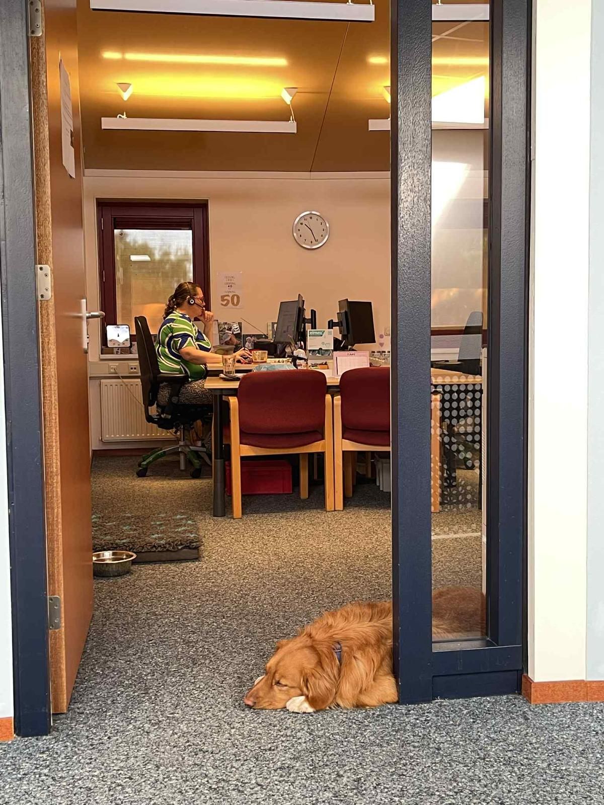 “Door Jack krijg je ander contact met mensen, de verhalen komen veel makkelijker los als hij erbij is,” vertelt Linda. Jack maakt dan ook écht deel uit van het team: hij wandelt mee in de pauzes, slaapt in verschillende kantoren, versnipperd zelfs papier en is vriendjes met iedereen.